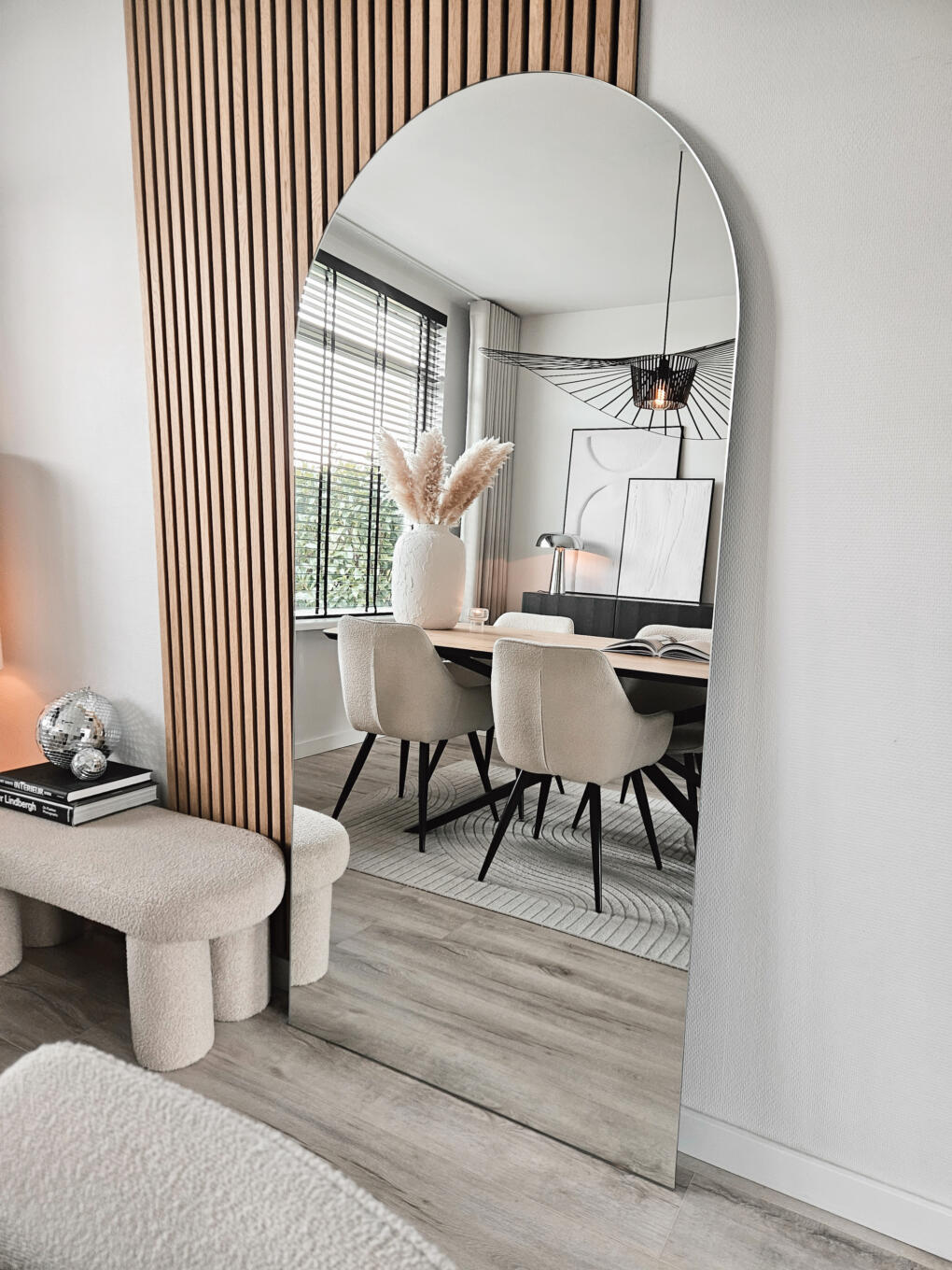 Een plat poly geslepen spiegel is strak afgewerkt en niet meer scherp. Dit wordt gekozen als de spiegelrand zichtbaar blijft.